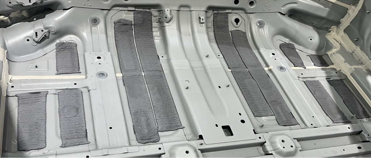 It also eliminates the need to manage numerous molded pad parts, which vary by vehicle model due to differences in body structure. In addition, asphalt materials are relatively heavy and add weight, whereas spray-applied materials can be formulated at much lower density, supporting vehicle lightweighting.