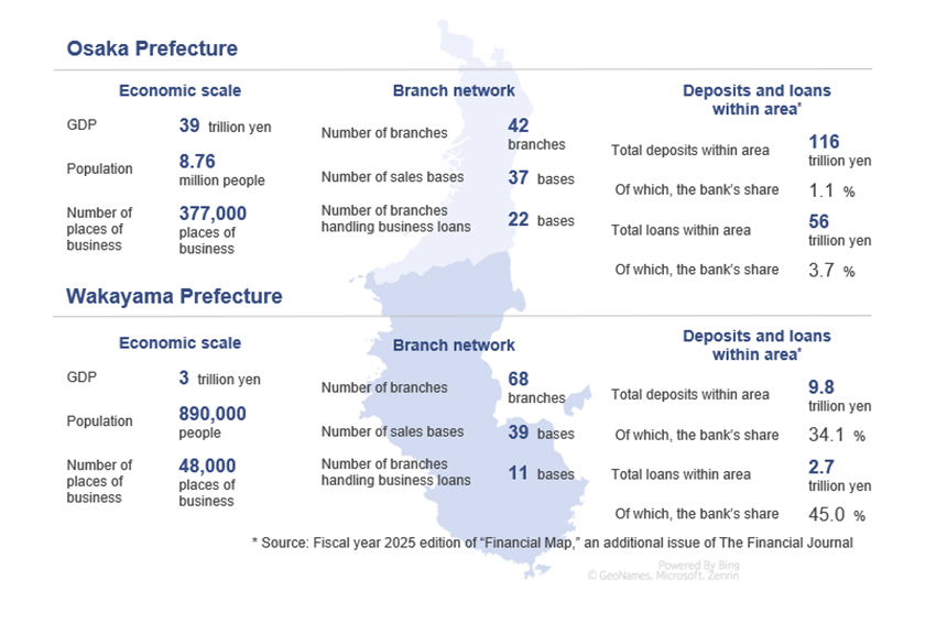 The shift to a world with interest rates marks a major turning point in business for us as regional financial institutions. To begin with, regarding our business model, our business area spans Wakayama and Osaka. You may already be aware that we have had a strong presence in both regions for quite some time. In fact, we began expanding into the Osaka area roughly 75 years ago, and at present, the number of our operational branches is comparable between Wakayama and Osaka. So, in that sense, we’re a regional bank operating across both areas.