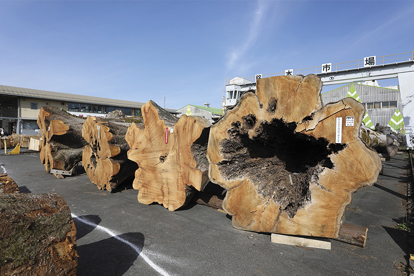 Meiboku is rare and complex, its value shaped by the unique patterns of each grain. A single log can fetch up to a hundred times the price of ordinary wood, earning it the nickname “the jewelry industry of wood.” Few companies enter this field, but Yamagataya Industry thrives on its expertise and precision.